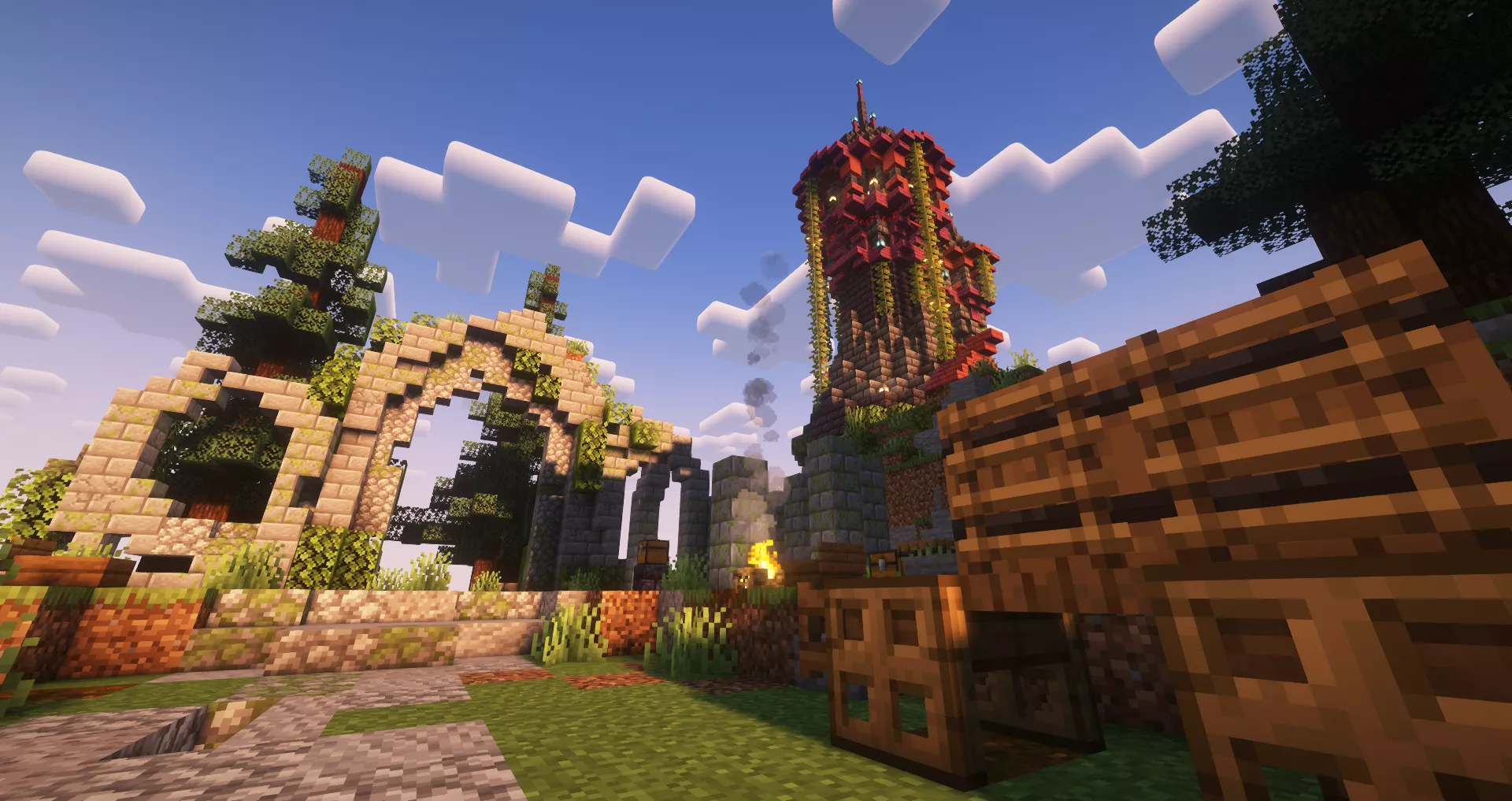 Here is a little sneak peek of our new survival spawn. It's still work in progress but looking good!